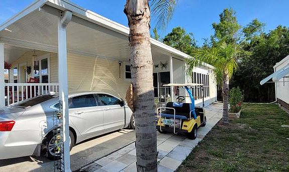 FLORIDA LIVING AT IT'S FINEST!!! NO REPAIRS NEEDED! METICULOUS MAINTAINED HOME!!! If you are looking for the perfect home, look no more! This beautiful Palm Harbor Model was built in 2019 and is in new condition. This 2 bedroom 2 bath home has an open concept with many upgrades which includes a new Rheem AC system in 2024, luxury laminate flooring throughout with the exception of the bedrooms which are carpeted, white cabinets, new marble counter tops and back-splash, Genie pull-outs in all the bottom cabinets for easy access, black appliances, vaulted ceilings, crown molding, new interior paint, a full front porch to relax and enjoy the sunshine, a covered carport, an air conditioned glass enclosed porch for all season use with sunshades and a very large shed for extra storage. Lastly, the high quality Florida furnishings and golf cart are negotiable with the right offer! The lot rent is $816 per month paid on a quarterly basis. Bayshore Village is a gated 55+ pet friendly community. It includes all the amenities you could image including a pool, clubhouse, shuffle board, boccie ball, gym and library. This community is close to everything including shopping, restaurants and quick commutes to US-41 and I-75. Please call now for your showing as this one will not last!