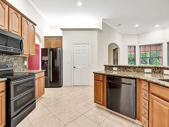 WOW! A $65,000 whole house solar system powers the house. is only 3 years old. Electric bill is only $29/ mo. This 4BR home features a den + office or 2 offices or possible 5th bedroom + office. Spacious with high ceilings and 6'' crown moldings throughout. Two large primary BR closets, spa tub and dbl sinks. Over 25 different varieties of tropical fruit trees from mango & Lychee to Pomegranate, banana & Avocado. Fully fenced 1.09 acre manicured, high & dry lot with electric gate & paver lock driveway. Detached utility shed included. Porcelain tile wood-look floors in the BR's and tile floors in LA. Gourmet kitchen with two pantries, granite counters & Samsung appliances. Rheem Eco net smart Hybrid water heater. Two French doors leading to large covered & screened porch.