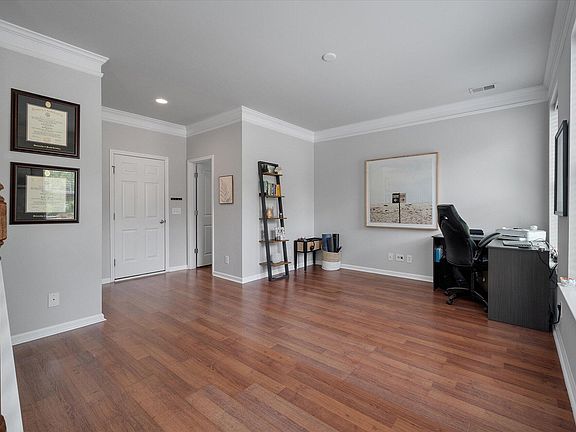 Discover your dream home in this stunning corner townhouse overlooking a serene pond! This beautiful residence boasts a unique 1.5 car drive-under garage, providing ample parking and storage. Step inside to find luxurious laminate wood flooring on the first floor, featuring a versatile swing space perfect for an office, study, workout room, even an extra bedroom, complete with a bathroom and bonus closet. The second floor welcomes you with an open and airy living space, seamlessly integrating the kitchen, living room, and dining area. Enjoy relaxing evenings on porch just off the kitchen overlooking the pond. Abundant natural light floods the home through charming 2-over-2 windows throughout. Ascend to the third story and find two spacious bedroom suites, each with theirown ensuite bathrooms. The primary bedroom is a true retreat, featuring a large walk-in closet. The primary bathroom boasts a soaking tub and double vanity. Enjoy the comfort of brand new carpet throughout the third floor and a recently installed HVAC system for year-round climate control. Residents also enjoy access to fantastic community amenities, including a refreshing pool, a lovely park, and walking/jogging paths. Great location, close to grocery shopping, restaurants, and shops. Don't miss this opportunity to own a piece of paradise!
