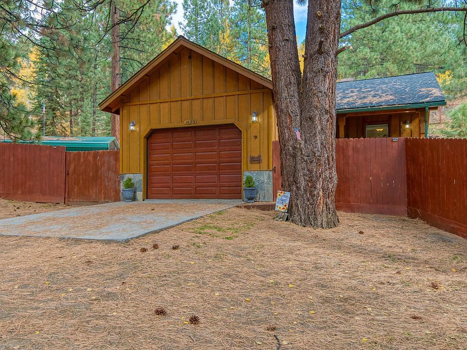 THIS IS THE "UNICORN FACTOR"... YES, RIGHT HERE! This absolutely CHARMING little CABIN IN THE WOODS does exist! Located Just one mile from the Grizzly Ranch Golf Course and one mile from the Lake Davis Boat Ramp - a true MOUNTAIN PARADISE! Very private and secluded, the property is completely fenced --- RV parking and hookups are in place so be sure to invite your friends and family! Step into this COZY, COMFY CABIN.... the beautiful hardwood floors are throughout the home, opening up to the Living Room and Kitchen with vaulted pine ceilings, all pine interior doors too. Kitchen island and counters are Corian, and the Hickory cabinets are just the right touch with stainless appliances. Stay toasty with the centralized Stove that is actually kerosene for heat. Primary bedroom is cozy with small walk in closet and private bathroom. Laundry room with storage opens up to the second bathroom. Second bedroom serves as an office but can certainly accommodate a bed, etc. The real Surprise is the outdoor space..... lawn area, fire pit, entertaining areas all around the property. Enjoy the beautiful Aspens and pines, completely fenced and private with all the mountain experiences you can find just a walk away! Call for your exclusive viewing and you will agree, this is a UNICORN!
