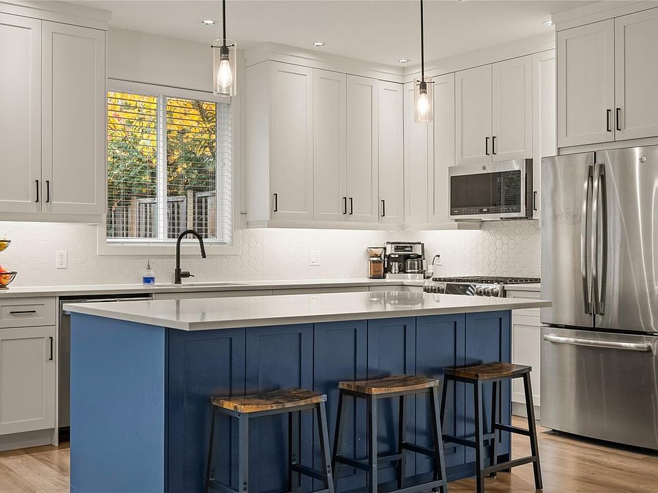 Big stylish kitchenOver-height cabinetsEnormous quartz topped islandElegant great roomStatement fireplaceSoaring ceilingsSuper spacious bedrooms