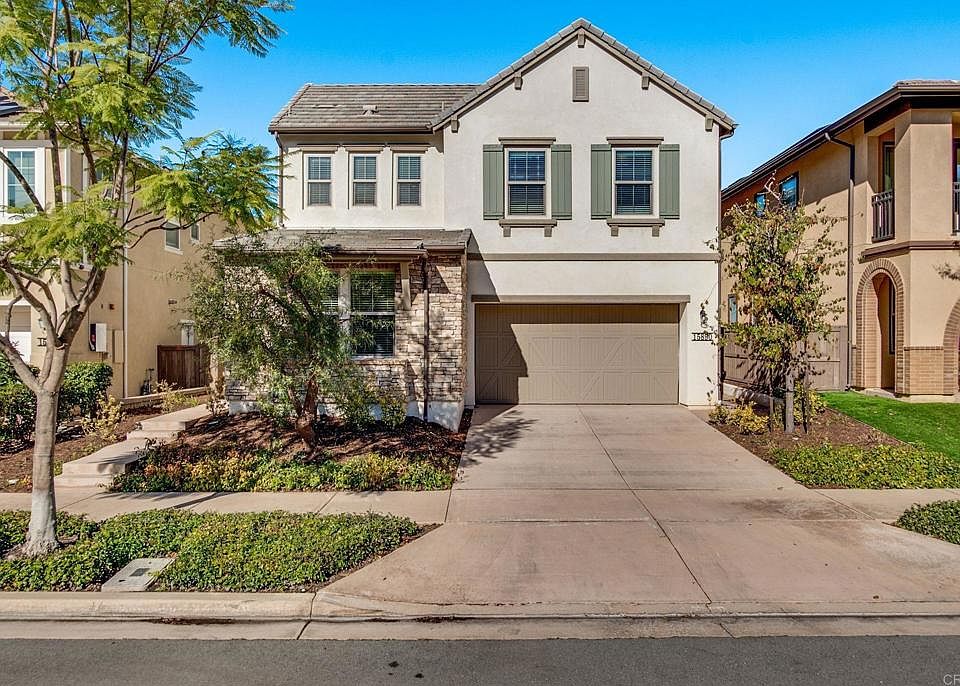 Fully Paid Solar!! Introducing 15890 Sarah Ridge Rd, a stunning property located in the prestigious community of Heritage Bluffs in Rancho Bernardo. This immaculate 2018-built residence features 4 spacious bedrooms and 3 full bathrooms within a bright and open floor plan and a loft on the second floor to use as a home office, game room or flex space. The gourmet kitchen is a true highlight, featuring granite countertops and backsplash, beautiful white cabinetry, top-of-the-line stainless steel appliances, a large walk-in pantry, and a spacious island with ample storage. The adjoining family room and dining area seamlessly flow into the outdoor covered patio, creating an ideal space for year-round indoor/outdoor gatherings. Throughout the home, you'll find windows that fill the space with natural light, as well as recessed lighting that enhances the home's modern design. The first-floor bedroom, which can easily double as a home office or guest room, is conveniently located near a full bathroom. Upstairs, the primary suite is a peaceful retreat, featuring a spa-like bathroom with dual vanities, built-in cabinetry, and a luxurious bathtub. The large picture windows offer stunning views and flood the room with natural light. Two additional upstairs bedrooms share a full bathroom. The expansive yet private backyard is perfect for outdoor living and entertaining, providing ample space for relaxation and recreation. This home also comes with fully paid solar, offering energy efficiency and savings. Heritage Bluffs is a highly sought-after neighborhood with a community playground, pool, spa, and pool house, plus greenbelt and many hiking trails on nearby Black Mountain. Homeowners enjoy inclusion in the acclaimed Poway Unified School District with many top-rated schools close by, like Willow Grove Elementary, Oak Valley Middle, and Del Norte High School. This home is conveniently located within 5 miles of 72 restaurants and is less than 1 mile from grocery stores, gyms, and other shops! You can’t beat this location just a quick few minutes’ drive to the I15 and CA-56 freeways! Don't miss the opportunity to make this exceptional home your own. With its impeccable design, luxurious finishes, and prime location, this home truly represents the epitome of refined living.