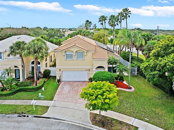 Beautiful home located in the Canary Bay community with elevated kitchen with granite tops and huge island overlooking beautiful family room for a large family multi-floor plan remodeled kitchen and bathroom tile floor and wood floor upstairs impact windows great swimming pool zebra shades new washer and dryer new water heater A/C is 9 years old patio with BBQ area new roof 2021 HOME IS EQUIPPED WITH FULL SOLAR PANELS OWNER WILL PAY THE LOAN IN FULL AT CLOSING NEW OWNER WILL ENJOY FOR MANY YEARS AMAZING SAVINGS ON THE ELECTRIC BILL minutes away from I75 shopping restaurants coffee shops Costco Pembroke Gardens mall minutes from Publix supermarket Silver Palm Elementary Walter C Young Middle School Charles Flanagan High School
