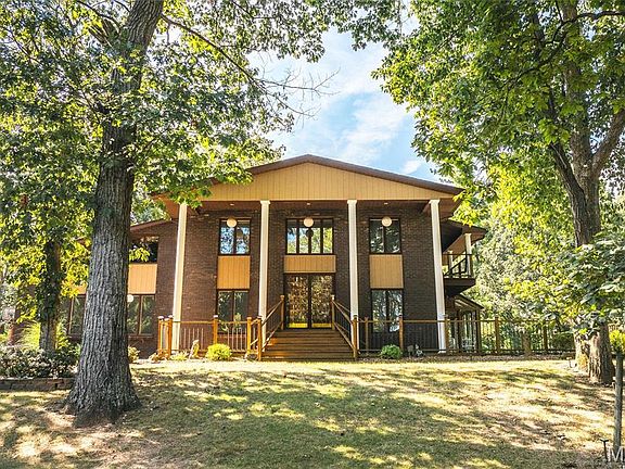 Beautiful two-story brick home on 6 wooded acres with stunning views and privacy is like living in a lodge in the woods. Main level features an eat-in kitchen with ceramic floors and large pantry, formal dining room with hardwood floors, and half bath. Cozy living room with gas fireplace opens to a sunroom with hot tub and access to the backyard with a 25,000-gallon heated pool, pool house whalf bath, and deck w new fence 2/25. 2nd floor offers 3 bedrooms, full hall bath, and a master suite with private full bath and deck overlooking the pool, barn, and gorgepus view including wildlife. All windows updated.Bedroom 2 has attic storage access. The walk-out basement includes a spacious rec room with wood-burning fireplace, custom wood walls, wet bar with Buhrmeister tap, three-quarter bath, and large utility room. Propane Heated one-car attached garage, four-car detached garage, and pole barn for horses or equipment. 5,000 gallon cistern for grass or garden/car washing/pool or hot tub filling but house is on public water. Private Septic recently serviced, water heater recently replaced. AC A-coil approx 2 yrs old. All appliances stay with home warranty available. Interstate access for easy commute to St. Louis or Springfield, IL.
