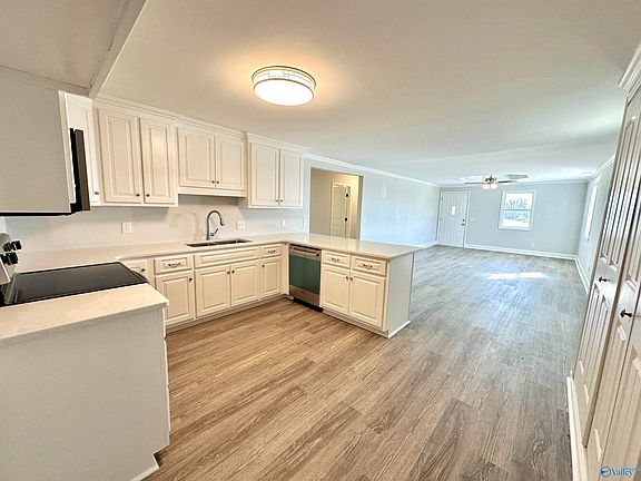 Don't miss out on this newly remodeled home on a large lot close to the TN river! Spacious living room opens to the remodeled kitchen with new stainless steel appliances. Lots of cabinet space and large pantry. Primary Suite features private bathroom with bath/shower combo. Laundry room has an offset that could work for office space. All new waterproof luxury vinyl plank flooring throughout. Attached carport and large backyard. New roof. Close to Hwy 72 and the TN river. Call to view this fully updated home!