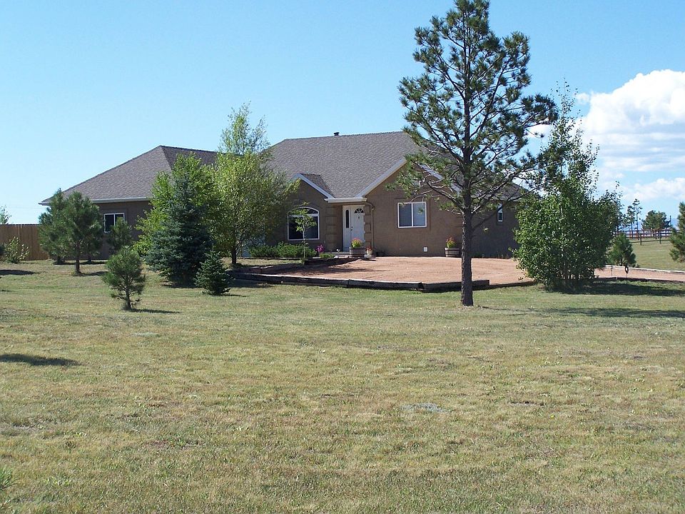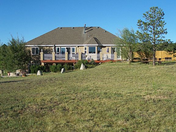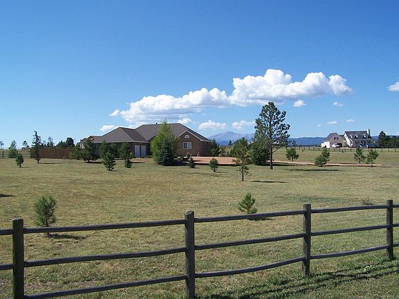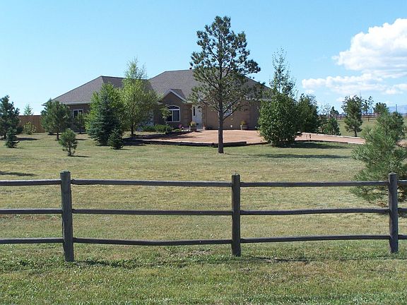 Welcome home to this 4 bedroom, 3 bath beauty in Larkspur. This home has it all! Pikes Peak view, private 5 acre lot, quiet neighborhood. 3 garages (7 car + RV gargae parking). Vaulted ceilings, open concept, gorgeous floors. Featuring a brick mantel fireplace in the family room. Kitchen has been upgraded with matching stainless steel appliances, granite counters and tiled backsplash. Bathrooms upgraded and remodeled. Finished walk out basement leading to backyard with beautiful views. Huge deck and balcony perfect for entertaining family and friends. Firepit and sitting area. Wired for hot tub on deck. Barn, paved driveway, crawl space professionally sealed. Close access to Co 83, I 25. This dream home won't last long, book your showing today!