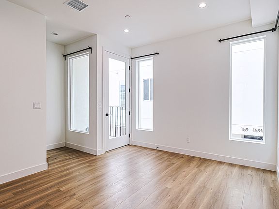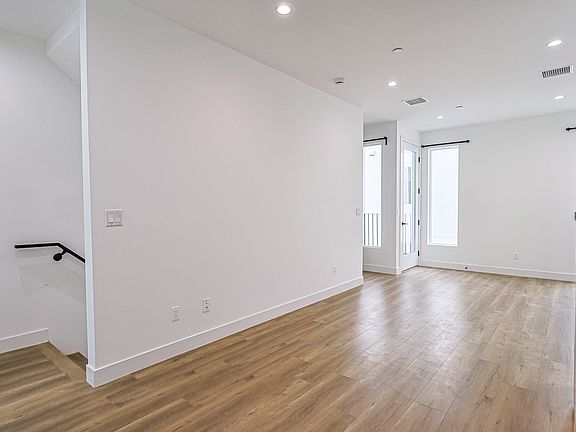 - Open floor plan with high ceilings and beautiful modern interior design and wood flooring throughout.