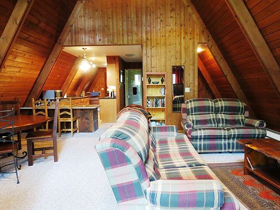 Upgraded A-frame chaletwith a knotty pine cathedral ceiling and open living space. Refurbished kitchen features an Adirondack granite breakfast counter, new travertine bathroom, two bedrooms, an open loft for extra sleeping space and a large deck. Full walk-out basement with a new boiler,insulated and partially tiled, features a large stone fireplace and is ready for expansion. Enjoy Au Sable Acres Assoc. amenities,which are voluntary, $55 annually, providing access to miles of cross country skiing, hiking trails, fly fishing on the Au Sable river, two tennis courts and a lake with playground, picnic and recreational area. Just minutes away from Whiteface Mt