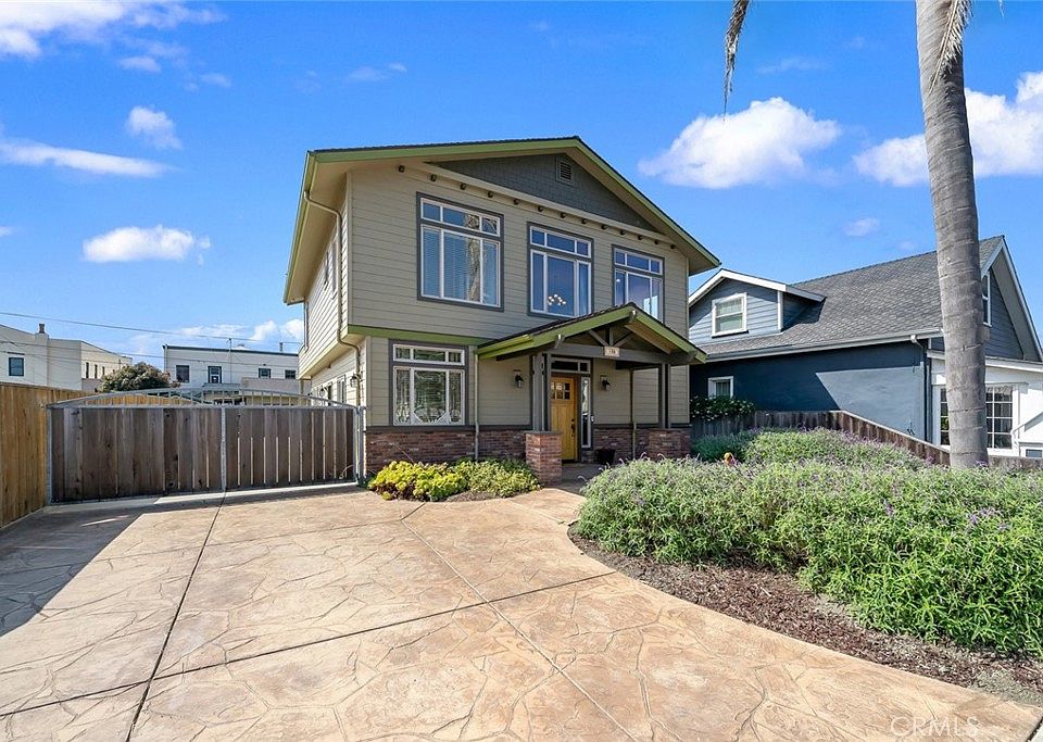 This two-story craftsman-style stunner features beautifully landscaped front grounds with a swaying palm, welcoming walkway, and a gated driveway that leads to an enormous 4-car garage—a true rarity in this coveted beach town! Leased solar adds energy efficiency.