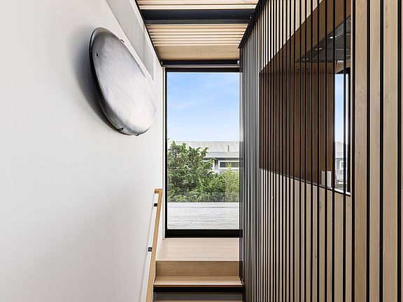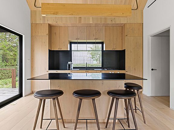 Amdist Amagansett's stetching dunes and surrounded by lush natural reserve, this architectural marvel, crafted by the acclaimed Bates + Masi Architects, stands as a beacon of contemporary sophistication. Embracing an environmentally conscious ethos, this exclusive property, located south of the highway and moments away from Atlantic Avenue Beach, redefines luxury living on the East End. This residence seamlessly combines modern maritime design with a touch of historic charm. With 5 bedrooms and 5 full & 2 half bathrooms, the 3,000 SF contemporary retreat is a masterpiece of architectural innovation. The property spans 0.30 acres offering a private oasis that includes a guest cottage, heated Gunite pool, and views of the majestic ocean off the rooftop deck. Step into a world of sophistication within the interior spaces, featuring European White Oak floors and ceilings that exude timeless allure. The open plan living, kitchen, and dining areas are bathed in natural light, adorned with recessed LED ceiling fixtures in brass, and equipped with blackout shades for privacy. A wood-burning stove adds warmth to the living room, while the entry foyer sets the tone for the impeccable design throughout. The primary bedroom boasts an en suite bathroom and a walk-in closet, providing a retreat within a retreat. Additional spaces include a media room and a bonus room, ensuring every need is met. Outside, the exterior highlights several design elements such as cedar shingles, a rooftop deck, and an outdoor kitchen enhancing the aesthetic appeal. A lookout deck provides a vantage point to appreciate the natural terrain, while large mahogany decks invite relaxation and entertainment. The weathering steel at the base of the building not only adds an industrial-chic touch but also ensures durability and aesthetic integrity on the dune as it will weather beautifully in the salt air. This property is a testament to architectural brilliance, offering a contemporary retreat where every detail has been meticulously considered. With a nod to the environment and a commitment to luxury, this home stands as a unique masterpiece amidst the breathtaking landscapes of beachfront Amagansett.