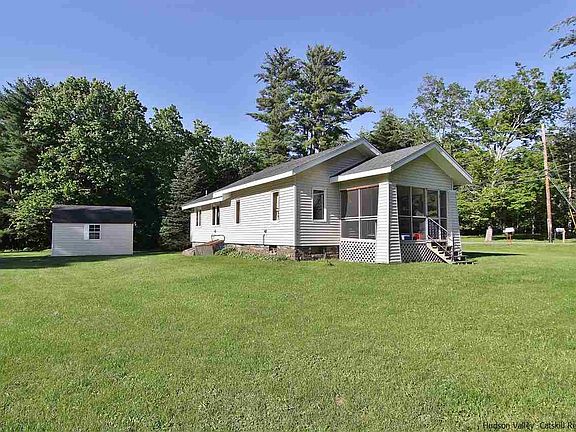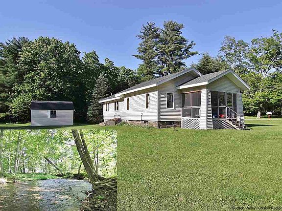 " The Sound Of Music" comes to mind when I walk this property. Amazing large 19+ acre parcel with a bordering tree lined stream located 5 minutes from the Village of Woodstock and Saugerties. Mostly flat parcel with open fields, mature trees and a quaint renovated cottage. Small ranch style home offers 2 bedrooms and one bath, nice wood accented rooms and a real country feel. The porch off the living room has sweeping meadow views with a mountain backdrop. House has been well maintained with a new roof, quality double pane windows and a renovated bath. Second bedroom off of kitchen currently used as a laundry room. Property has endless possibilities of building and farming. Property is zoned moderate density, 2 acre minimum per lot. Horses are permitted on the property.