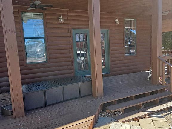 Escape to your private lakeside retreat located in Cedar Blue Park gated community, with this charming log cabin, featuring rustic finishes and a water view from the back deck. Seamless indoor-outdoor living with covered deck on 2 sides and open deck on the rear of the home, with access on 3 sides. The lower level features lots of natural lighting, a large open concept living/kitchen with eat-in bar, a private bedroom with en suite and french door access to the back deck, with another separate bath on the main level. Upstairs you will find a huge loft connected by a catwalk.... each end of the loft is roomy, well lit with natural light and has room for 3 or more beds. The roomy kitchen features lovely white kitchen cabinetry and granite countertops, free stand electric stove, stainless steel double door refrigerator and microwave. Park amenities include saltwater swimming pool, fishing ponds, family recreational center, volley and basketball, playgrounds, public storm shelters. Just a short drive to the beautiful Arbuckle Lake, Chickasaw National Recreation Area, Veteran's Lake and more!