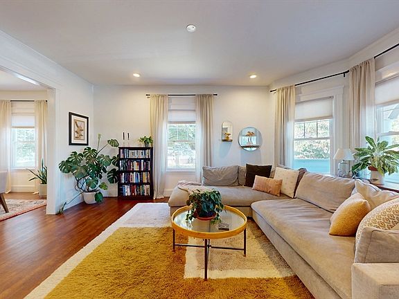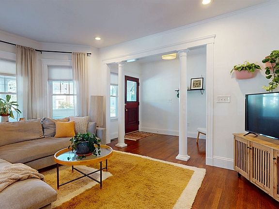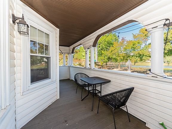 Welcome home to this beautiful high first floor condo across from Morrison Park. From the inviting front porch, step inside to a spacious foyer leading to a open concept floor plan, perfect for entertaining! The bright living room with bay windows and a formal dining area open to the the modern kitchen (2014) that features granite counters, stainless steel appliances, gas cooking, and breakfast bar. High ceilings, hardwood floors, and period details create a warm, airy feel throughout. The primary bedroom offers double closets, and both bedrooms are generously sized. In-unit W/D (2023), central air and modern bathroom complete this unit. Enjoy the outdoors on the front porch with views of the park, a private back porch, and common fenced yard. Updates: 2017 roof, tankless hot water, and well-maintained systems(2014). Enjoy one garage space and a second off-street parking. BONUS- 400 sq. ft. of exclusive basement storage that could be turned into a good gym space. Low condo fee.