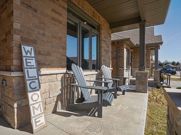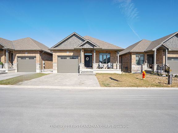 Welcome to Unit 19 at 159 Collins Way, where modern elegance meets effortless living in the desirable town of Strathroy. Just 20 minutes from London, this beautifully appointed detached vacant land condo offers a refined lifestyle steps from Caradoc Sands Golf Course, shopping, dining, and everyday conveniences. The open-concept main floor is designed for both comfort and style, with soaring ceilings and oversized windows that fill the home with natural light. The chef-inspired kitchen features quartz countertops, a striking backsplash, a large island, and premium stainless steel appliances, an ideal space for entertaining or simply enjoying daily life. The living room centers around a cozy gas fireplace and flows seamlessly to the dining area and out to the covered back deck. Overlooking peaceful farmland, this outdoor retreat offers a tranquil setting for morning coffee, evening wine, or gatherings with friends. The primary suite is a true sanctuary, boasting a generous walk-in closet and a spa-like ensuite with quartz finishes and a glass rainfall shower. A second bedroom on the main floor provides versatility for guests or a home office, while a dedicated laundry room and inside entry to the garage ensure everyday ease .The fully finished lower level extends the living space with a bright and spacious family room, a third bedroom, and an additional full bathroom, creating the perfect setting for relaxation or hosting overnight guests. Additional highlights include 5 high end appliances and low monthly condo fees of just $73, offering peace of mind and low-maintenance living. This move-in ready home perfectly balances elegance, functionality, and lifestyle ideal for golf enthusiasts, downsizers, or anyone seeking a turn-key property in a vibrant community. Book your private showing today and experience all that this exceptional residence has to offer.