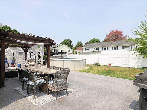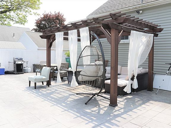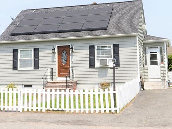Fully updated Cape style home featuring 3 bedrooms and 1 full bath. This beautiful, spacious, and low maintenance home is now ready for you! The first floor features a beautiful living room that leads you into an eat in kitchen with stainless steel appliances, a full bath, and master bedroom with a large walk-in closet. Upstairs features two good-sized bedrooms with ample storage. Updates include marble countertops with deep sink, new expansion tank, newer roof, and newer vinyl siding. There are also newly installed solar panels w/ transferable lease. A fully finished basement with vinyl flooring offers additional space for a recreation room or playroom. The outdoors is ready for summer entertainment with an above ground pool, stamped patio decking, and a beautiful pergola. The fenced-in yard provides plenty of privacy, making it the ideal spot for children and pets to play safely. Nothing left to do but move in! OH Sat, 5/20 2pm-4pm & Sun 5/20 12:30pm-1:30pm.