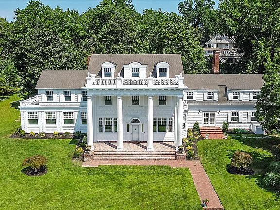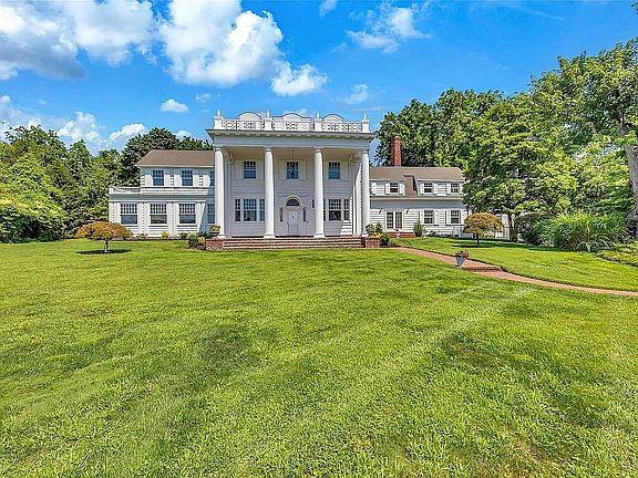 Broker's fee gladly given. Please note that the taxes listed on Zillow are not accurate, the correct County taxes = $48,700. Spectacular restored Georgian Colonial Mansion on 2.6 acres and 400 feet of waterfront! Yes! 400 feet of direct waterfront on Huntington Bay with spectacular views from every room. 7 bedroom, 7 bath, eat-in kitchen, formal living room with large fireplace, and other unique rooms. This 1917 updated home with incredible original details inside and out, and modern amenities including 7 zone central air conditioning throughout. Updated kitchen with fireplace and 7 bathrooms. Master suite with separate his and her bathrooms and closets, and even a waterview from the sunken bathtub! In-ground sprinklers, generator, shower/steam room, refinished wood flooring throughout, updated electrical, updated plumbing, and new gas boiler-hot water heater. High ceilings and unique architectural details throughout. Original brick patios, large Roman in-ground gunite pool. Large 3 car garage with high ceilings and huge 1,000 sq ft room above garage with 12 foot ceilings. Quality fenced in property with new driveway. *Please note that the Zillow map is not accurate.