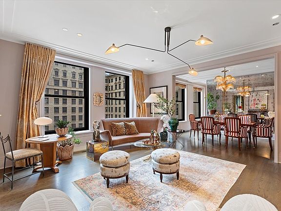 Exquisite tasteFantastic light fixturesLounge with wet barCustom millworkSumptuous wall coveringsGrey stained floorsBold colors