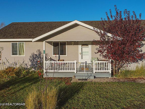 Well maintained home in Star Valley Ranch with great views of the mountain. This home has quick access to the county road for commuters. The home has a nice floor plan with the master on one side of the home and the guest rooms on the other. It has good natural light and a covered front deck. The property is landscaped with trees. It is on a paved road. It is located not to far from the hiking trails and amenities of Star Valley Ranch such as golf, swimming and hiking. Enjoy watching the wild life right from your deck. Friendly clean neighborhood.