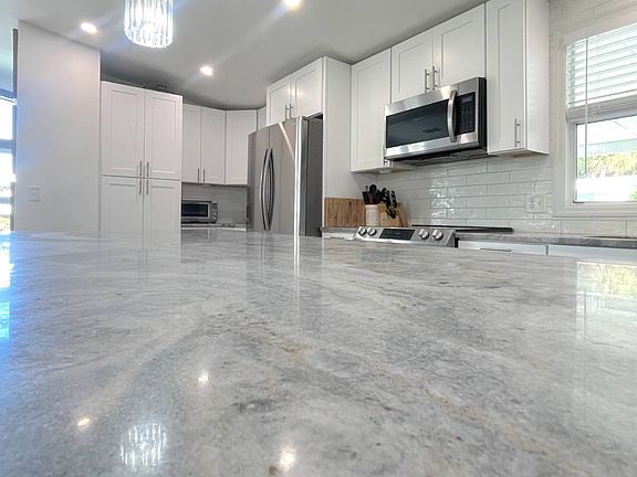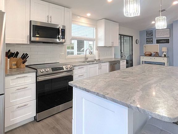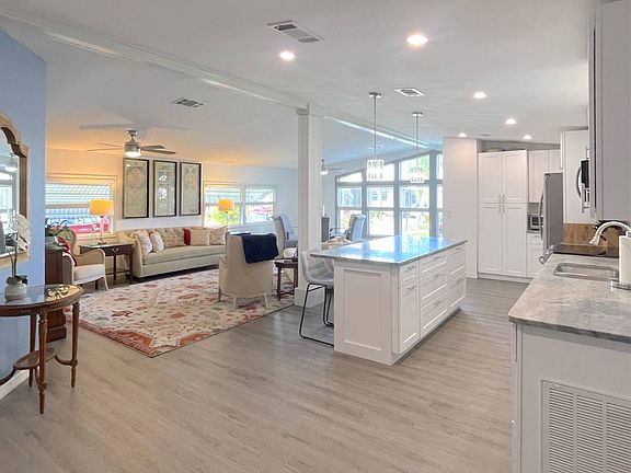 Discover this stunning, fully remodeled home in Jamaica Bay, one of Fort Myers most sought-after lifestyle communities. This gorgeous 2-bedroom, 2-bath residence has been transformed from top to bottom and offers modern elegance, exceptional comfort, and effortless Florida living. Step inside to an impressive open-concept kitchen and living room, perfect for entertaining. The chef in the family will fall in love with the expansive counter space, abundant cabinetry, stainless steel appliances, high ceilings, and every modern upgrade you could want. Luxury vinyl flooring runs throughout the main living areas, with plush carpet in the bedrooms for added comfort. The spacious primary suite features a beautifully designed ensuite bathroom complete with double sinks, a tiled walk-in shower, and a private toilet area. The second bathroom is equally impressive, offering a tub/shower combo with stylish tile accents. Enjoy year-round relaxation in the enclosed lanai, equipped with a mini-split AC so you can stay cool in the summer or open the windows to let in the winter breeze. Additional perks include a convenient shed with a brand-new washer and dryer. Every detail of this home's interior is brand new, beautifully finished, and impeccably maintained. Homes like this don't come along often, don't miss out! Call us today to schedule your private showing!