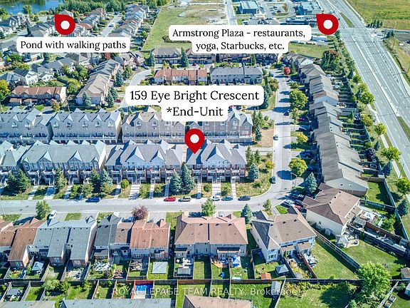 Welcome to 159 Eye Bright Cr, where comfort, style, and affordability meet, with one of the LOWEST CONDO FEES in the area! This modern, move-in ready condo features soaring cathedral ceilings, hardwood and tile throughout, and a bright open living/dining space filled with natural light. The practical kitchen with breakfast bar flows into two comfortable bedrooms, including a primary with walk-in closet and cheater ensuite. Enjoy your private balcony for morning coffee, container gardening and breathtaking sunsets, plus the convenience of in-unit laundry, a storage area, and direct garage access. Two parking spots (garage + driveway) add to the value and convenience. Tucked into a friendly, family-oriented community and surrounded by townhomes, you'll be steps from parks, schools, shops, cafés, walking paths, transit, and the Limebank LRT (within walking distance!!). With the low condo fees and an affordable listing price, this is a rare opportunity for buyers to enter the market without compromise. A perfect fit for first-time buyers, downsizers, or investors looking for unbeatable value and lifestyle.