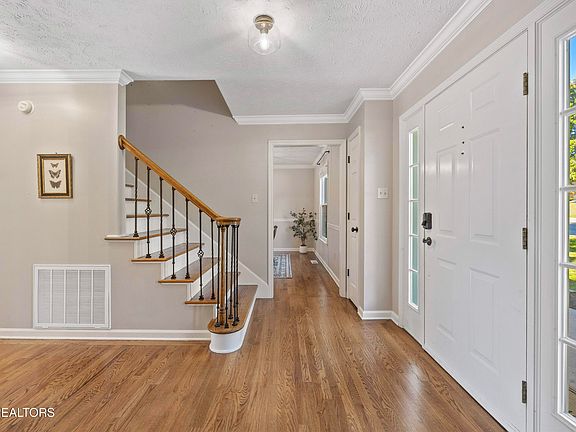 Your search is over! Welcome to this beautiful, all brick home in the desirable Farragut Crossing neighborhood. Location is everything and this home has it! Minutes to West Knoxville's premier shops and dining, Concord Park on Fort Loudoun Lake, and zoned for all Farragut schools. This home boasts 3,358 square feet, including four bedrooms plus a large bonus room and two and a half bathrooms. Step inside the front door and you'll be greeted with stunning hardwood floors, elegant crown molding and brilliant natural light throughout. The main level's open layout flows seamlessly from the spacious living room into a bright and airy kitchen. You'll love cooking on the gas cooktop! In the living room a gorgeous custom built-in adds both architectural interest and functional storage. Entertain friends and family, there's plenty of space with both a formal dining room and eat in kitchen area. Cozy mornings can be spent in front of the gas fireplace or the warm and inviting sunroom. Upstairs you'll find all four bedrooms, including a generous primary suite with a large walk in closet and jetted tub in the ensuite bathroom. The bonus room is huge - with multiple areas of flex space for an office, playroom, etc. Laundry is conveniently located upstairs and features tons of storage. BRAND NEW carpet upstairs means you're ready to move right in! Outside you'll enjoy spending breezy afternoons on the expansive deck, you can make your indoor-outdoor living dream a reality! The large backyard feels extra private being fully fenced and lined with mature trees. Don't forget about the neighborhood amenities - the pool and tennis courts are just a quick walk from the house! Don't miss your chance to see this stunning home, schedule a showing today!