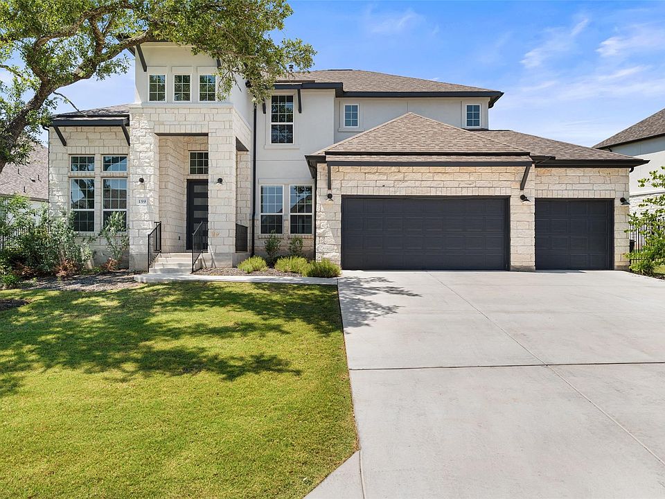 Also available for sale. A magnificent 5-bedroom home in the highly coveted community of Parten Ranch. Built in 2022 and zoned to highly-rated Dripping Springs ISD, 159 Fireside is Situated on a Cul-de-sac street for privacy and serenity. The impressive curb appeal is enhanced by an oversized front yard and 3-car garage. Inside, a dedicated office with French doors provides the perfect blend of privacy and efficiency. Soaring ceilings bathe the main living area in natural light. The focal point is the upgraded fireplace surrounded by a dramatic accent wall. The upgraded kitchen features a built-in wine rack, stainless steel appliances, and an oversized island (stainless steel refrigerator is included). Enter the primary suite to discover a luxurious spa-like private bathroom with soaking tub and shower, dual vanity sinks, and a huge walk-in closet. A secondary suite with its own private bathroom is also located on the main level, providing an excellent multi-generational or guest retreat. The laundry room has been upgraded with quartz countertops, utility sink and beautiful cabinetry. 3 more bedrooms are located on the second level, one with its own private en-suite, and two with a Jack-and Jill style bathroom. Designed for entertainment and privacy, a dedicated media room wired for sound is ready for endless movie nights, and a generous game area provides plenty of room for entertainment. Full glass sliding doors provide access to the covered patio that features a built-in gas connection. A private backyard backing to green space is the perfect spot for many relaxing evenings, while the dual level configuration presents plenty of possibilities to customize the yard for entertainment, relaxation, or both. Fitted with beautiful, modern finishes throughout, and within walking distance of the community pool and amenity center, 159 Fireside Road is the perfect family haven.