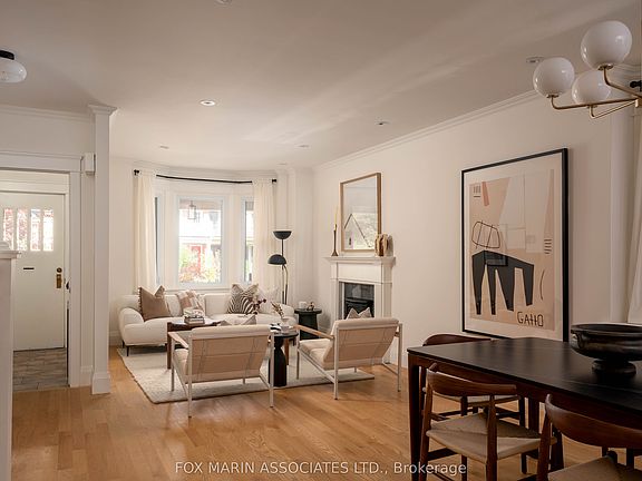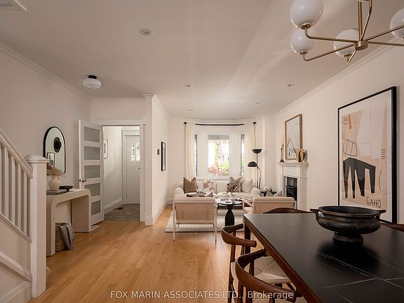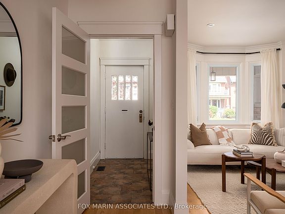 If these walls could talk, they'd tell a century's worth of stories. Built in 1917, this 3-storey Edwardian in Playter Estates reflects the restrained elegance of the era. A balanced, symmetrical facade with original brickwork and a wide, covered porch sets the tone, while a second-floor balcony and gabled dormers add both vantage & character. Generous bay windows, a steep-pitched roofline, & a classic entry with a transom window highlight the architectural vernacular that defines this sought-after Jackman School District enclave. Step inside and the vibe shifts to elevated minimalism with a contemporary aesthetic. An open-concept flow links entry, dining, and living into one seamless space, perfect for effortless entertaining, Sunday homework seshs, or cozy nights tucked in by the fireplace. A sunlit bay window frames leafy residential views, while crisp white walls and warm oak flooring create a backdrop that's architectural yet inviting. In the kitchen, sleek flat-panel cabinetry in natural wood tones with sculptural grain is paired with expansive granite counters and a waterfall peninsula with eat-in seating, integrated stainless steel appliances & the right proportions maximize both prep space and storage. Upstairs, 5+1 suites span the second and third floors, giving you the flexibility to style them as bedrooms, workspaces, or guest rooms. Soft drapery, sculptural lighting, and natural textures set a calm, versatile mood, while three well-appointed bathrooms balance sleek fixtures with tub & shower options. The lower level adds another layer of livability with 6'7" ceilings: a bright recreation room ready for movie nights, a large playroom, or even a private home gym - custom built-ins, generous storage & pantry space keep things practical, while recessed lighting and neutral finishes maintain a clean, modern feel. A separate entrance makes it ideal for guests, extended family, or muddy dog run-ins, & a 2nd laundry area doubles the efficiency (cont'd)..