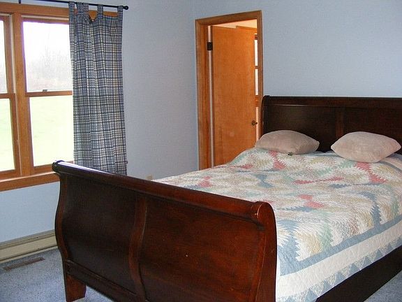Take in gorgeous sunsets from the deck of this 3 bedroom, 2 bath ranch on 2.4 acres. Enjoy the privacy of country living and the convenience of being just a 30 minute drive to Albany International Airport in Colonie. Located on a quiet cul-de-sac, this home features an inviting knotty pine mud room. Walk into the spacious updated kitchen with new appliances. The kitchen and living room feature gorgeous maple hardwood floors. The living room is highlighted by arched accents and a wood burning fireplace. Large dining area has a breathtaking view no matter what the season. The roof mounted solar panels cover 100% of yearly electric needs paired with an established garden, greenhouse, and chicken coop allow for selfsufficient living. The master bedroom features private bath and large closets. Ranch floor plan for easy, one floor living and the extra convenience of a first floor laundry area. Dry, full walk-out finished basement not calculated in square footage for a bonus family room. You will love these extra steps the seller has taken.
