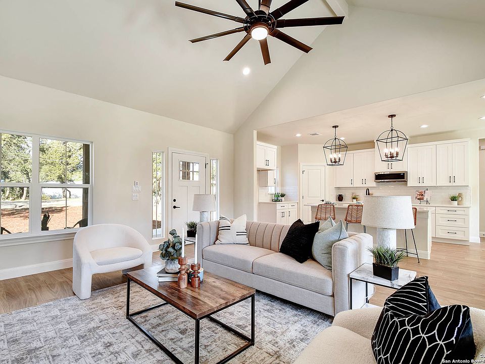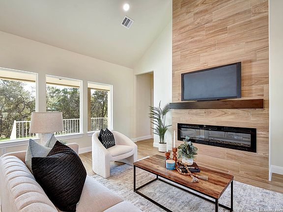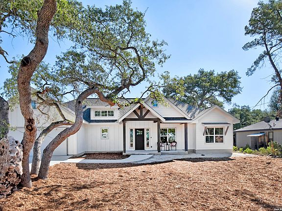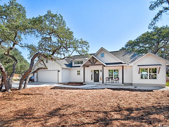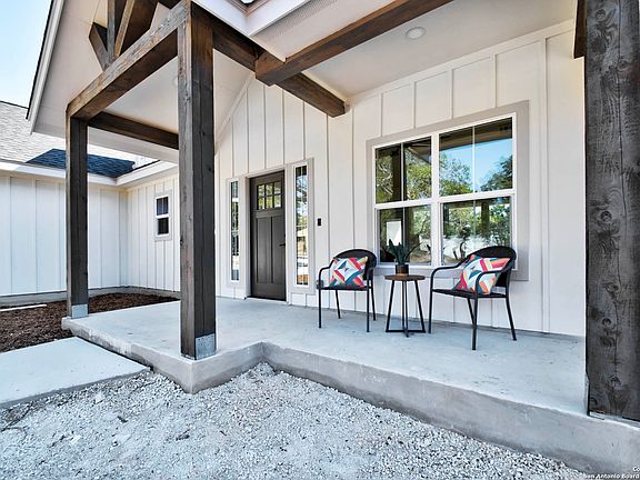Welcome to serene lakeside living at 159 High Oaks in the heart of Canyon Lake, Texas, where peace and tranquility meet modern convenience. This brand-new construction, nestled on a spacious .33-acre lot, is perfectly tailored for those seeking a blend of comfort and nature. This charming single-family residence boasts three cozy bedrooms and two well-appointed bathrooms, ensuring ample space for relaxation and retreat. The heart of the home features an open floor plan that seamlessly connects the living, dining, and kitchen areas, anchored by a stunning linear fireplace that invites you to unwind. The interior is bathed in natural light, creating a warm and inviting atmosphere, while the oversized laundry room adds a touch of practical luxury. Step outside to the expansive backyard, where a lengthy porch offers the perfect backdrop for evening or quiet mornings with a cup of coffee, watching the local deer roam. Residents can indulge in the neighborhood amenities, including a community pool and exclusive lake access, ensuring endless recreation opportunities. Convenience is key with Lowes grocery store nearby, and the attached two-car garage provides additional storage and security.Discover the magic of 159 High Oaks, where the canvas is blank, and the possibilities for your new life are endless.