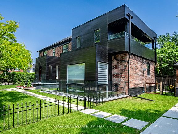 Situated on a tree-lined street near Mimico Creek, this custom residence in prestigious Sunnylea was designed and built by an architect for his own family. With a newly completed major renovation, the home offers over 4,300 sq. ft. of refined living space across 4+1 bedrooms and 5 bathrooms, combining architectural sophistication with advanced energy performance.Two zoned, independent Energy Star-rated HVAC systemsserving bedrooms and living areaswork alongside foam insulation, an airtight envelope, and smart thermostats to optimize comfort and reduce costs. All systems are new, including LED electrical, German plumbing, and a low-maintenance tankless water heater. The home is also prewired for a sauna. Bosch WiFi-enabled appliances, automated main-floor blinds, and a fully integrated irrigation and landscape lighting system complete the smart home features.The chefs kitchen showcases Spanish Cosentino quartz and custom millwork. A main-floor bedroom offers barrier-free accessibility and can flex as a private office. The primary suite features a 7-piece ensuite with heated floors, smart bidet, and rainfall + waterjet shower. Heated flooring continues into the family room. Dual laundry rooms on the second floor and lower level support multi-generational living.A custom spiral stair leads to a finished basement with nanny/in-law suite, indoor greenhouse, entertainment area, and a live tree feature. Outdoor living includes a 240 sq. ft. deck and 130 sq. ft. balcony. The garage includes new insulated doors/windows, 240V EV charging, and parking for 1 vehicle, with space for 2 more on the front parking pad.Built with brick and heavy-gauge aluminum siding for low maintenance. Zoned for Sunnylea Junior School and only a 10-min walk to Royal York subway and Bloor St.