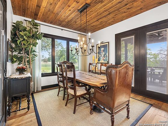 Welcome to 159 Inspiration Loop. This stunning 4-bedroom, 4.5-bath, 4,869-square-foot homestead (includes conditioned spaces) is located in the gated Hidden Springs community near Fredericksburg and sits on 10 beautifully treed acres. This is a once-in-a-lifetime opportunity to own a little piece of heaven on earth. Thoughtfully designed for hosting family and friends, this property offers something for everyone. The homestead includes a 2,381-square-foot main home with 2 bedrooms and 2.5 baths. The kitchen is truly a cook's dream, featuring a French door double oven, refrigerator/freezer, 6-burner gas cooktop with griddle, and a dishwasher located in the island. For entertaining, there's also a spacious "dirty kitchen" with its own refrigerator/freezer, wine fridge, sink, speed oven/microwave, and a second dishwasher. The beautiful living room features a floor-to-ceiling stone gas fireplace, wood ceilings, and large windows that fill the space with light and provide views of the landscaped, fenced backyard. The primary suite boasts abundant natural light, serene views, and two walk-in closets. The ensuite bath includes a double vanity, large walk-in shower, and a private toilet room. A second bedroom with its own ensuite and walk-in closet is located on the opposite side of the home for privacy. The 1,500-square-foot guest house sits to the right of the main home and includes 1 bedroom, 1 bath, a full kitchen, and a loft that can serve as a second bedroom or flex space. The cozy living area centers around a stacked-stone gas fireplace. The bathroom is a true retreat with a large shower and a clawfoot tub that overlooks green space on the property. The kitchen is well-appointed with a pantry and everything needed for comfortable living-perfect for guests or multigenerational living. The oversized 3+-car garage features custom alder cabinetry and overhead storage. A finished and conditioned loft space sits above the garage, ideal for a studio, gym, or office. To the left of the main home is the barndominium, which holds up to 6 cars and/or functions as a workshop. Adjacent to it is an approximately 12' x 40' guest suite, which includes a living area, wet bar/kitchenette, bathroom, and bedroom overlooking a serene grove of trees. Outdoor living is just as impressive. A fully landscaped and fenced backyard includes a covered outdoor kitchen with alder cabinetry, built-in grill, and a custom wood-fired pizza oven. Nearby, a conditioned mini kitchen adds extra convenience. Multiple porches-front, back, and side-offer peaceful spots to watch the deer and sheep roam. Hidden Springs is a unique Agrihood community, featuring a 29-acre community greenspace and garden, pickleball courts, a pool, and a pavilion. All of this is just a 15-minute drive from historic Fredericksburg and the Hill Country Wine Trail. An agricultural valuation is in place.