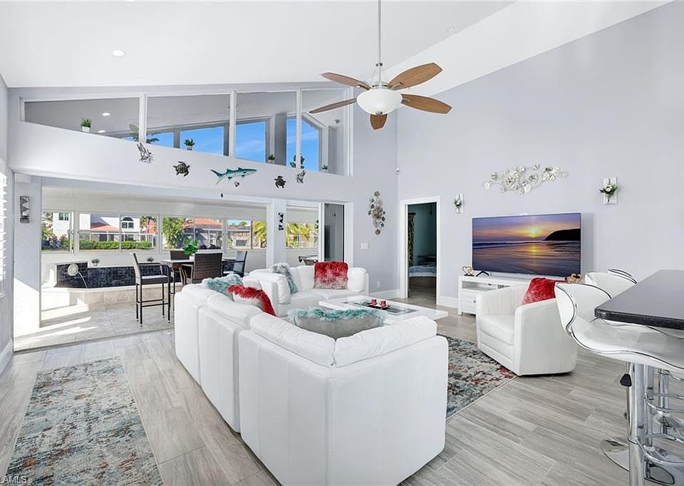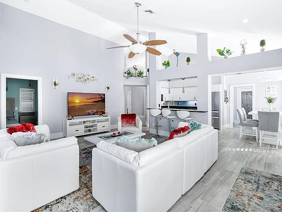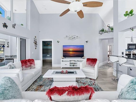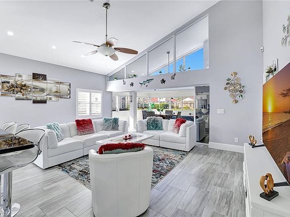 Welcome to 159 Lady Palm Dr in the desirable Sabal Lake community of Naples—a beautifully updated and immaculately maintained 3-bed, 2-bath home offering vaulted ceilings, an open and naturally bright layout, and a beautifully updated kitchen with white cabinetry, granite countertops, and stainless steel appliances. The primary suite features high ceilings and direct access to the enclosed lanai, while the additional bedrooms provide flexible space for guests or an office. An expansive, fully enclosed and air-conditioned lanai showcases a heated spa with lake views, creating a true indoor-outdoor retreat. The home also includes thoughtful upgrades such as plantation shutters, fresh interior paint, modern electrical updates, and a finished epoxy-coated garage with built-in storage. Sabal Lake residents enjoy a low-HOA lifestyle with access to a community clubhouse, pool, hot tub, and tennis/pickleball courts, all within minutes of Downtown Naples, world-class beaches, dining, and entertainment.