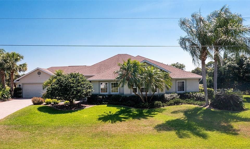 Superb quality and built to perfection with 3 bedrooms, 2.5 baths and 2 car- garage with large workshop. This custom- built Halverson home is a waterfront pool home located on a double lot in the White Marsh Creek section of Rotonda West. This home offers 2,551 square feet of living space and features low maintenance tile and wood laminate flooring, several tray/vaulted ceilings and arches accentuate the architectural design of this one-of-a kind home. The moment you arrive at this elegant home you will begin to appreciate the upgrades beginning with the lush landscaping, including fruit trees and brick paved driveway and pathway. The spacious formal living room has soaring ceiling with rustic windmill fan, French doors out to the lanai/pool area and flows into a formal dining room and onto the gourmet kitchen. Beautiful granite counter tops, stainless steel appliances (refrigerator/stove new 2020), an abundance of cabinet/draw space, wine bar, breakfast bar and is open to a breakfast nook with great views of the water and preserve beyond. The master suite is your private oasis with pool access, carpeted flooring, and an en-suite with tiled floor, walk-in closet, linen closet, his/her vanity area, garden tub and Roman shower with double shower heads and bench. Family and friends will appreciate the two nice sized bedrooms with walk-in closets and a guest bath featuring their own Roman shower. Step outside and enjoy the outdoors in a screened in lanai featuring sparkling heated pool newly re-surfaced with pebble tech and new pool pump, Travertine decking, covered lanai area and an additional grilling area all with great views of the waterway beyond. Enjoy nature and fishing from your own backyard. No building in the back due to the nature reserve. Additional features include inside laundry room, 1/2-bathroom, A/C bonus room makes a great workshop, hurricane windows and doors, new water tank in 2020, A/C in 2015, ADT home alarm system, 35-year roof, tons of storage space including attic and storage room at the back of home, and so much more. There are five golf courses operated by Rotonda Golf and Country Club. Thirty miles of picturesque canals, lakes and ponds wind through the community and offer fishing and boating opportunities for its residents. Located just minutes away from Englewood and Boca Grande beaches, shopping, great restaurants, entertainment.