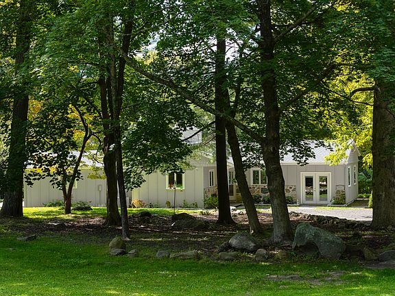 Painted River is a rare offering in the Merryall community of New Milford, Litchfield County. Set at the end of a 400-foot private drive, this 6+ acre property offers complete seclusion with direct frontage on the West Aspetuck River. River views, glowing westerly sunsets, and preserved frontage guarantee privacy for years to come. Groomed walking trails weave through fenced meadows and mature landscaping, creating the perfect backdrop for daily walks, horseback riding, or quiet reflection. With five horse stalls, three paddocks, and a custom insulated shed, this is a true equestrian retreat. The single-level home has been fully renovated with no expense spared. Hardwood floors and new doors run throughout. Sun-drenched rooms infused with nature highlight the open layout, where living and dining areas are anchored by a stone wood-burning fireplace and flow onto a bluestone patio overlooking the river. The chef's kitchen boasts stone countertops, stainless appliances, and a wine cooler. The primary suite features its own fireplace and luxurious en-suite bath, while two additional bedrooms share an updated second bath, each with patio access. Outdoors, custom hardscaping, specimen trees, and a built-in fireplace and grill make entertaining effortless. Just minutes from New Milford's village center and 90 minutes from NYC, Painted River offers the perfect blend of rustic charm, modern comfort, and timeless privacy.