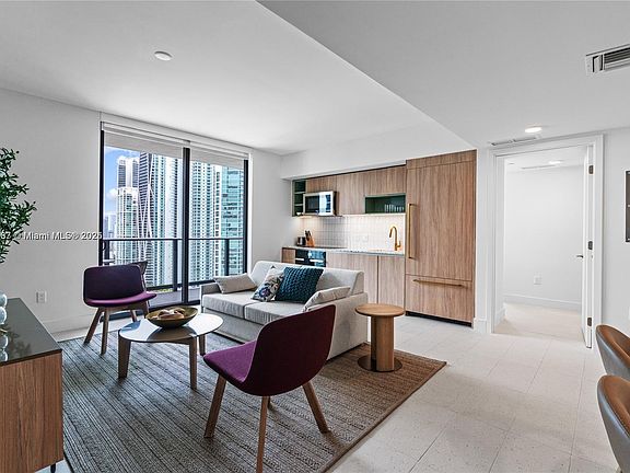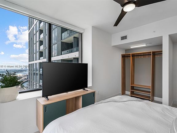 Natiivo/Gale Residences presents a brand new, spectacular 2-bedroom unit featuring a north-facing balcony. This fully furnished residence boasts an equipped kitchen and a TV in every room, designed with elegant West Elm furnishings. Amenities include a swimming pool with a bar overlooking Biscayne Bay, a steak restaurant, a speakeasy bar, a hammam, spa/sauna facilities, steam treatment rooms, a business center, a party room, and a gym with stunning views of Biscayne Bay. Enjoy 24-hour concierge and valet parking services. Conveniently located just one block from Bayside and the Miami World Center, you'll find shopping and dining options nearby. The Brightline train station, connecting to Orlando, is only a few blocks away.