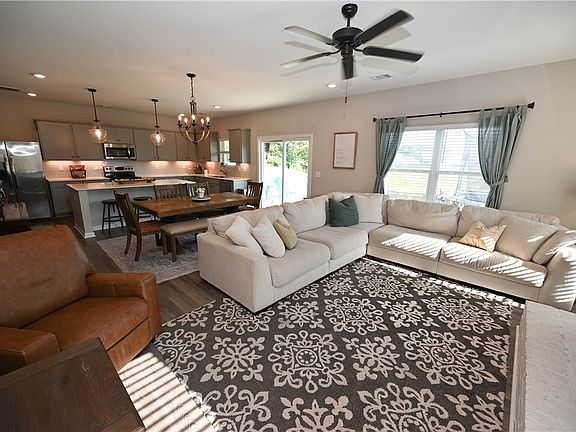 Charming cul-de-sac lot with a private fenced back yard & covered patio! Welcoming foyer opens to a cozy living room with lots of windows & fireplace as a focal point. Living room opens to the bright & airy kitchen complete with tiled backsplash, under cabinet lighting, huge center island, & stainless steel appliances. Picture window over the kitchen sink overlooks the fenced back yard. Sliding glass doors open to the covered patio with two fans & tv mount - perfect for fall gamedays! Spacious primary bedroom with en-suite bath. Primary bath boasts a step-in tiled shower & walk-in closet as well as an extended vanity. Bedrooms 2 & 3 both enjoy walk-in closets & share a hall bath off the multi-purpose loft area at the top of the stairs. Half bath tucked away off the main living area. Around the corner from Chewacla State Park, the new Lake Wilmore Rec Center, Shell Toomer Trail, Auburn University, & Ogletree Elementary with easy access to I-85! Neighborhood pool/ponds/community gardens.