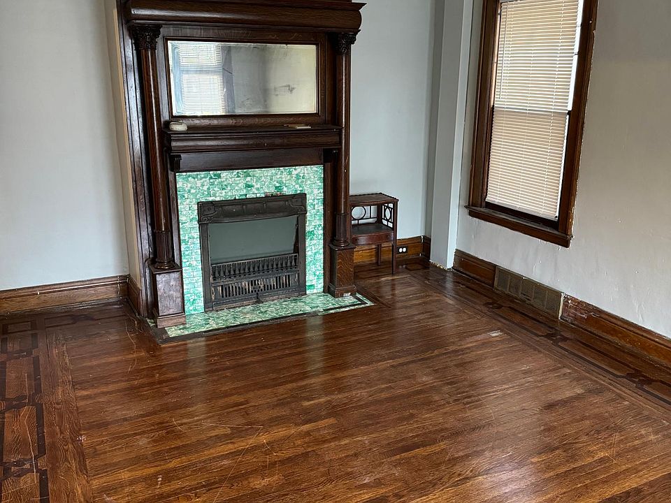 Check out this two bedroom with office lower apartment. Hardwood and original woodwork throughout. Pantry in kitchen. Off street parking is possible. This is an up and coming neighborhood close to a lot of amenities.