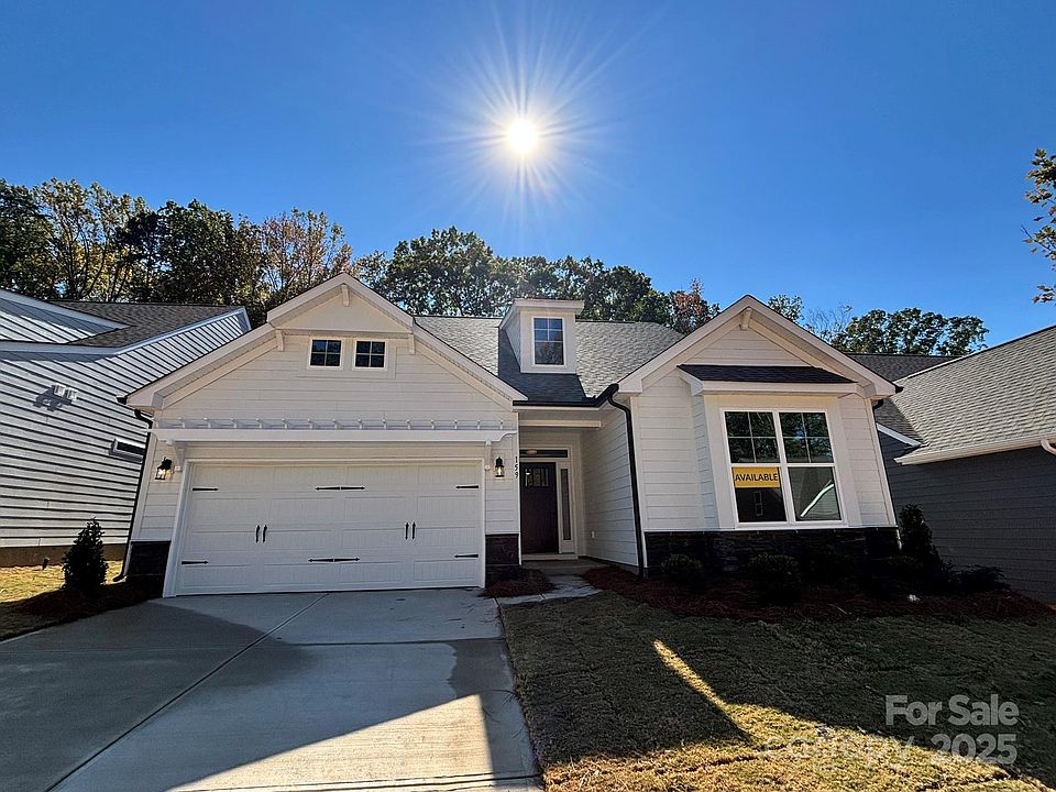 Discover the ease of low-maintenance living in this beautifully designed ranch style home, featuring an additional half story upstairs complete with a bedroom, full bathroom and a loft. The Mayfair plan features an open kitchen with breakfast area that leads into the family room. The designer kitchen includes white cabinets with matte black hardware, quartz countertops and stainless-steel appliances including a gas cooktop, designer range hood and wall-oven. The primary bedroom features a tray ceiling as well as a luxury shower in the primary bath. One additional bedroom and an office are also featured on the main floor. This home combines the luxury of brand-new construction with thoughtful amenities including lawn care and conveniently located walking trails. Enjoy modern living in a peaceful, well-maintained neighborhood designed for comfort and convenience.