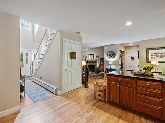 Step into this charming cape and prepare to be wowed! From the inviting front porch to the abundant natural light streaming in, this home exudes warmth and character. The beautiful wood floors on the main level set the stage for stylish living. The kitchen is a dream, complete with a eat in dining area that leads out to the backyard oasis through a glass slider. The formal dining room flows seamlessly into the living room, making entertaining a breeze. The wood fireplace with brick hearth in the cozy family room adds a touch of warmth on chilly nights. The foyer is elegant, leading to a hallway and staircase adorned with wood accents that ascend to the second floor. Upstairs, you'll find a spacious primary bedroom with ample closet space and built ins and two other lovely bedrooms. Spacious full bathroom featuring a double sink vanity. Need more space? The finished basement offers endless possibilities - think extra living area, office, or a wonderful hideaway. Nestled in a prime location close to walking trails and Sawyer Lake, this home is a serene escape while still being within easy reach of all the Lakes Region has to offer. Don't let this opportunity slip away - come see it for yourself!