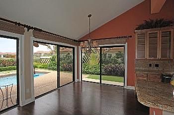 Listing agent: Dylan Snyder, Call 561-951-9301 for information. Beautifully upgraded home situated at the highest point of the Ridge at The Bluffs. Sliders along the East wall of the dining room, living room, and master bedroom provide sweeping views of the ridge and amazing sun and moon rises each day. The view is truly enjoyable in all weather. Enjoy light shows over the water during thunderstorms, a city atmosphere with beautiful lights and kite fliers at the beach! Completely renovated home with high quality wood cabinetry, granite counters, and dark wood flooring throughout. Kitchen also features new stainless appliances. Master suite has plenty of closet space, extra large shower and whirlpool tub. The Ridge at The Bluffs is the perfect location close to shops and restaurants. Walk to the beach!