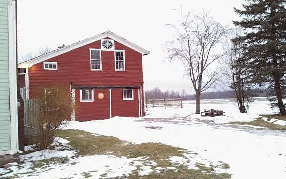 Charming Greek Revival, a place you can call home. This 4BR, 2BA home has been well-maintained, updated & includes Home Warranty. Features a large eat-in kitchen with newer appliances and countertops, moveable work island and solid maple cabinets, spacious formal dining room, living room with wood-burning fireplace, family room with coal-stove, large bedrooms and partially finished bonus room. Carriage-house/barn has newer concrete floor and second story. Lovely yard with stream, flower, and vegetable gardens. Convenient to Ithaca, Myers Park in Lansing, Aurora and on Cayuga Lake Wine Trail.