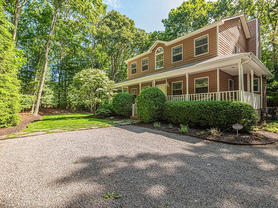 This fantastic traditional home awaits in a peaceful and serene Water Mill location, close to beautiful bay beaches and surrounded by privacy and serenity. Sited on over half an acre at the end of a deep flag lot, the charming and peaceful 2-story home greets you with a covered wraparound porch and expertly manicured landscaping. Ready for friends and family, this forever home in the Hamptons has 4 spacious bedrooms, 3 full baths, and 1,892 +/- sq. ft. of living space. Meticulously maintained by the previous owner, there are lots to love about this home, with a wood-burning fireplace with custom commissioned stained glass windows, handsome hardwood floors, fully irrigated grounds, and mature plantings. Enter the open, light-filled home through a dramatic double-height entry foyer with plenty of space for everyday luxury living. Enjoy the beaming light from a curved wall of windows surrounding the dedicated dining space. The primary suite includes a Jacuzzi tub and additional bedrooms are bright with plenty of space to comfortably accommodate your friends, family and guests. Accessed by a French Door egress, a freeform stone patio in the backyard is perfect for relaxing afternoons and dining al fresco in the Hamptons sun. An unfinished lower level and attic space await your imagination to create your dream home. You will fall in love with the morning sunrise on the patio and sunsets on the porch, filling the home with light. The large backyard offers plenty of space for a pool to complete your Hamptons oasis. With only 1 year-round neighbor, offering unmatched privacy and peace. Enviably located in the heart of the Hamptons, you will be moments from the bay beaches and the many charming shops and restaurants in the nearby Hamptons Villages.