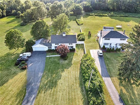 Country farmhouse colonial renovated with modern updates! Over 2 acres in scenic area with fenced in yard and room for a pool! Beautiful white kitchen cabinetry featuring granite counter tops, island ,tile back splash and stainless appliances. Open kitchen and dining room are spacious with great light. Gleaming laminate flooring throughout the home. Large formal living room with classic molding and fireplace. Den or home office on main level includes additional fireplace and tile flooring with sliding door to patio and PVC fenced yard. Powder room and laundry on main level. Upstairs features 2 large bedrooms with fantastic closet space. Full updated full bath and more! Quiet location so close to everything shopping, medical, restaurants, MTA and more. Must See home with room to expand! LOW TAXES! Minisink Schools.