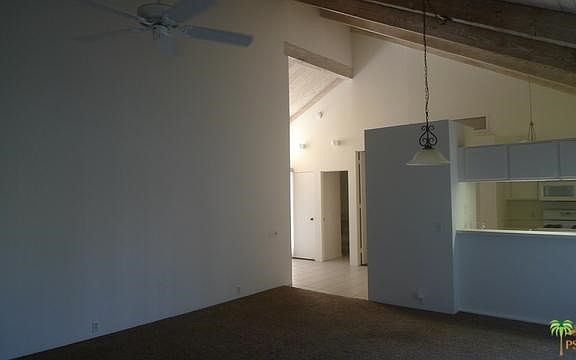 Live the good life in prestigious Mission Hills Country Club. Light and bright large 1BR unit w/dramatic high vaulted wood beamed ceilings, fireplace, in-unit laundry and a two car garage. An outstanding opportunity to live in a world renowned country club for a bargain price! Unfurnished and available immediately for annual lease. Sorry no pets...