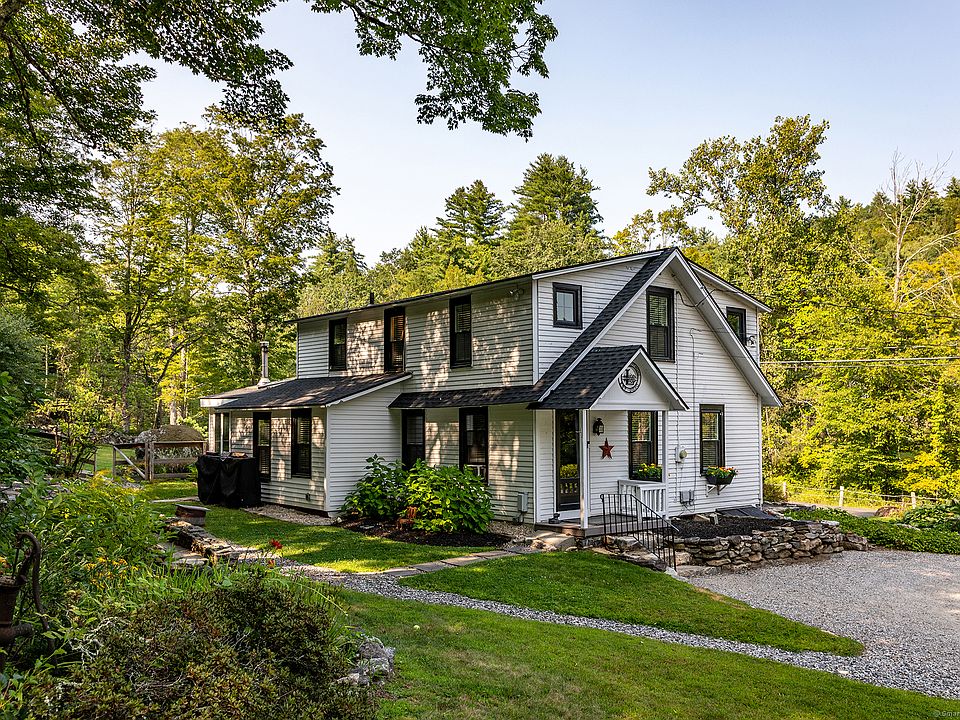 Introducing Sandy Brook Cottage. Perched gently near the banks of the meandering Sandy Brook, this c.1800 home exudes quiet charm and understated elegance. Set on over 3 picturesque acres in the hidden gem of Colebrook. It is a true country escape. One that offers privacy, character, and an effortless connection to nature. Winding stone walls trace the contours of the rolling landscape, creating a setting that feels both cultivated and wild. The main residence is joined by a 3 car garage with an in-law suite above, along with a classic barn, a woodshed, and even an original icehouse, evoking a sense of New England's storied past. Inside welcomes you with warmth and authenticity. The dining room and center hall staircase greet you upon entry, setting the tone for a home rich in detail. To the right, a cozy living room is anchored by the original river rock fireplace. An enchanting nod to the home's heritage. Beyond that, a sunroom with walls of glass and a wood-burning stove draws in the natural beauty just outside, creating a serene space for reading, gathering, or simply watching the seasons shift. Two flexible rooms on the main level, ideal as a home office or den, includes an attached half bath, while the eat-in kitchen offers the perfect spot to enjoy morning coffee to the sound of the brook just beyond the window. A dedicated laundry and utility room sits conveniently just off the kitchen. Upstairs, you'll find 4 bedrooms and a full bath, all with wood floors and a graceful, time-worn elegance. Each space feels rooted in history, yet ready to be shaped by a new chapter. Step outside to a custom stone patio with a built-in fireplace. The perfect setting for crisp autumn evenings under the stars or lazy summer afternoons by the brook. The detached in-law apartment offers 1 bed, 1 full bath, kitchen and additional living space. It's easy to imagine life unfolding here, slowly and beautifully. Tucked between the cultural richness of the Berkshires and the quiet hum of Litchfield County's beloved towns, Colebrook remains one of the region's best-kept secrets. With its scenic reservoirs, abundant hiking trails, and deep-rooted charm, the town offers the perfect balance of tranquility and inspiration.