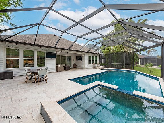 This SINGLE STORY 5 bedroom 3 bath home is located in The Crossing in the highly desirable neighborhood of 20 Mile. The home features wood like tile floors through all the main living areas. The kitchen has upgraded soft close cabinetry with pull out drawers/shelves glass cabinets, gas cook top, french style refrigerator, oven/microwave tower, subway tiled backsplash, walk in pantry, large center island,quartz countertops and pendant lighting! Expansive great room featuring custom built ins, mill work and sliders leading to the screened in covered lanai overlooking the gorgeous pool preserve view through the panoramic screens. The spacious laundry room is connected to the master bathroom. Primary features carpet, and expansive walk in closet. Beautiful Master Bath with soaking tub, and separate shower. Home features 4 additional secondary bedrooms. The expanded screened in lanai is perfect for entertaining while swimming in your custom pool and spa overlooking the large yard and preserve. The double car garage, expanded driveway, and paver walkway completes this spacious and beautiful home. Ask about our Preferred Membership to Gate Hospitality - Ponte Vedra Inn & Club, The Lodge & Club, Epping Forest, and The River Club. BRAND NEW Carpet installed and grout on tile flooring has been cleaned throughout the home!!!