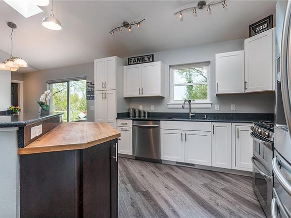 Vaulted, open floorplan, flooded with sunlight & loaded with upgrades: Newer construction with designer colors, stainless appliances, quartz, double ovens, gas stove++. Professionally designed/manicured yard w/sprinkling and backing to open space/ag land. Featuring custom east face/protected deck with built in bench. Main floor master suite w/double sinks & custom tile walk in shower w/rainfall shower head: custom finishes feel like a spa.Fence-enclosed parking pad next to the double garage.