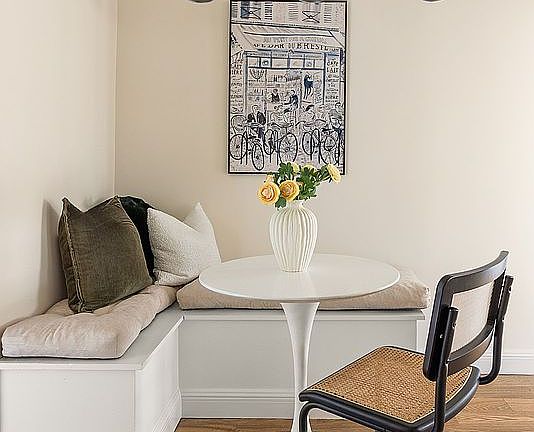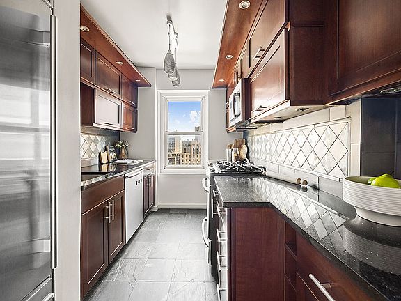 The thoughtful layout of 27H includes two beautifully appointed bedrooms, a full bathroom, an additional powder room for guests and even a charming dining nook with built-in bench seating, an ideal spot for your morning coffee. The renovated, windowed kitchen features high end stainless steel appliances, granite countertops, garbage disposal and a dishwasher.