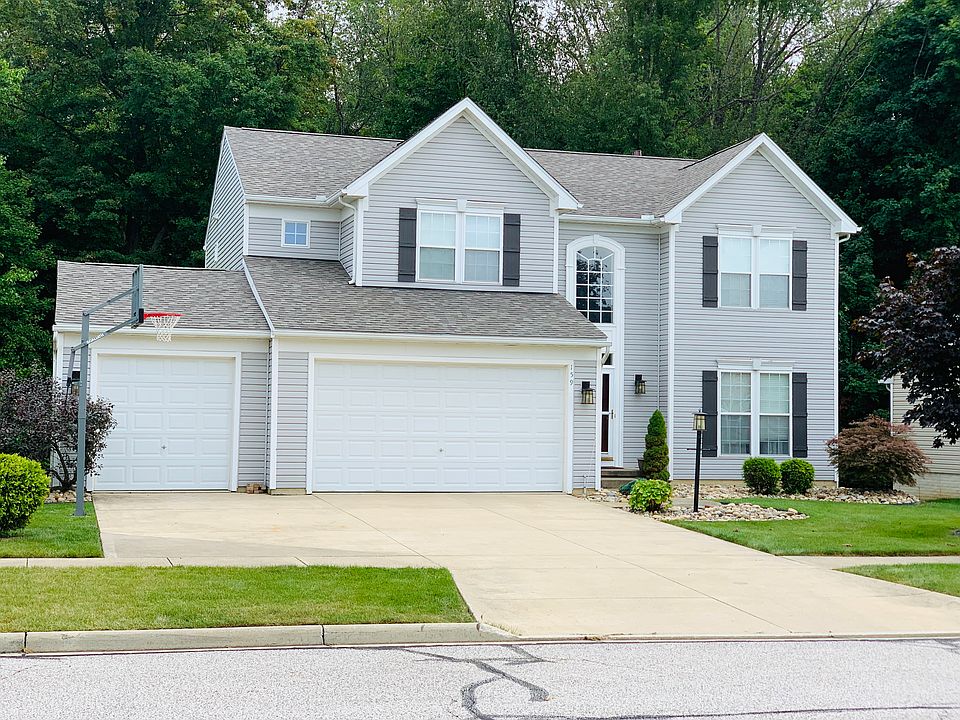 Newer home (freshly painted-neutral decor) in Creekside Estates with 2 story Foyer, 4 Bedrooms and 2 1/2 Baths. Open Floor plan with Great Room w/Gas Fireplace and Formal Dining Room. Large Kitchen with Oak Cabinets, Island and Eat-in area. Beautiful Sun/Breakfast Room with wall of windows, leading to lovely Deck and treed yard. First floor Laundry room and mud room with entrance door to the 3-car Garage. Master Bedroom with sitting area, Bath and walk-in closet and 3 bedrooms on 2nd floor. (4th Bedroom could be Office/Den) Rec room/Game Room, Storage area and plumbed for a 3rd Bath in Walk-out Lower Level with Sliders to wooded back yard. Approx 2800 sq ft including finished bsmt. Move right in and enjoy a home on a quiet, dead-end street - yet close to shopping, medical facilites and Rt. 77.