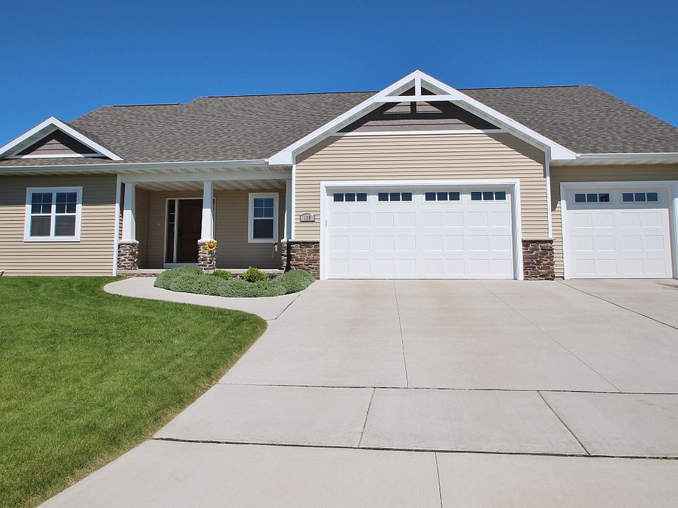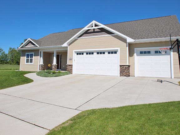 Beautiful like NEW 3 yr old custom built split bedroom ranch w/lots of extras set on a quiet cul-de-sac street. Features open concept floor plan, gorgeous two tone Maple shaker cabinets, granite counter tops & stainless steel appliances, hickory hardwood floors, woodburning fireplace, 9ft & cathdral ceilings on 1st floor, open staircase to lower stubbed for bath, bed & wetbar, 3 car insulated gar